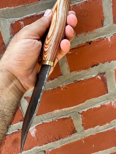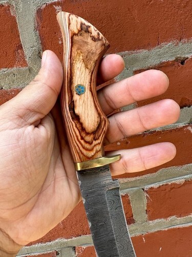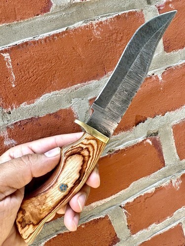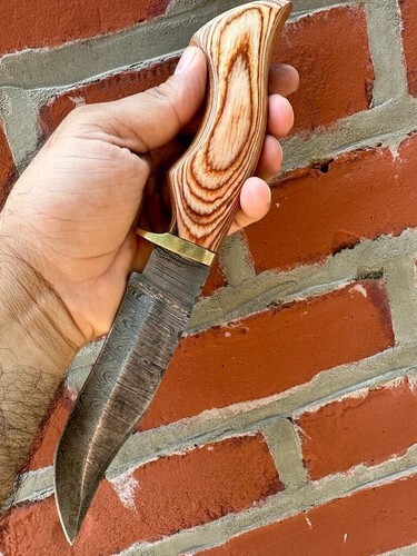 CUSTOM HANDMADE DAMASCUS STEEL HUNTING SKINNING KNIFE WOOD HANDLE BRASS GUARD