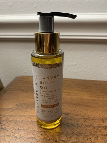 The Besque Magic Luxury Body Oil is a nourishing and hydrating massage oil designed for both men and women. Made in the United Kingdom, this 100mL oil formulation from Besque is perfect for smoothing and moisturizing the skin during massages. Its luxurious formula leaves the skin feeling silky and pampered, making it an ideal choice for those looking to indulge in a relaxing and rejuvenating skincare experience. New without box. 3.4 fl oz