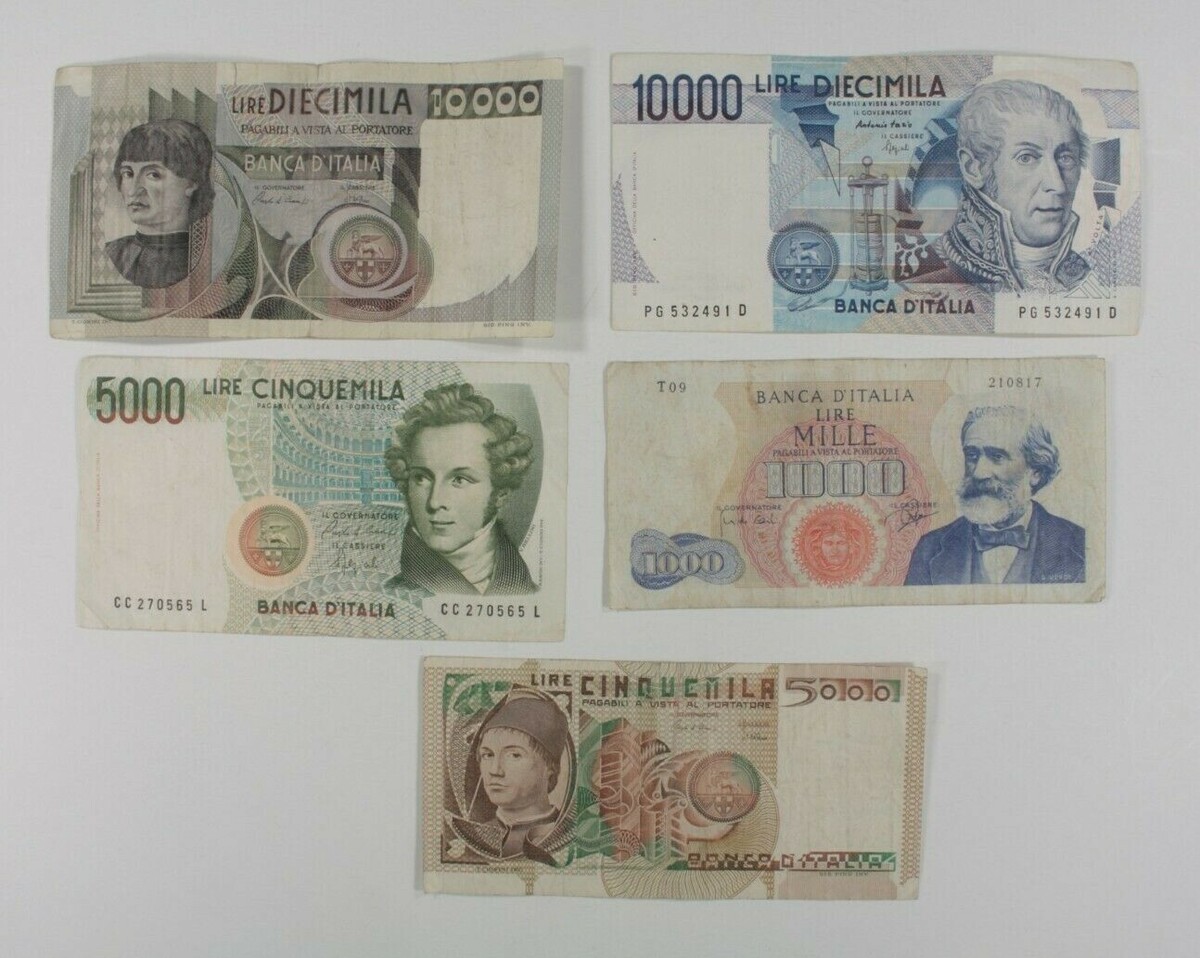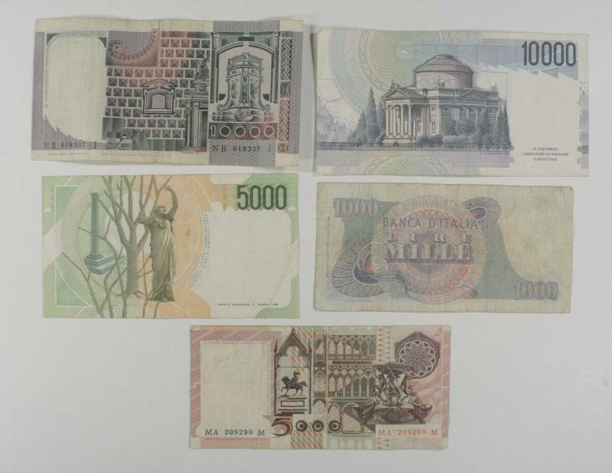 Italy 5-Notes Currency Set // 1,000 to 10,000 Lire
