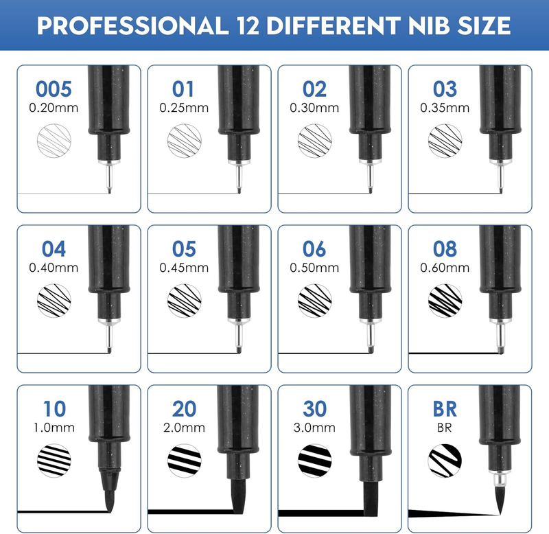 Micro Black Drawing Pens Art Fineliner Ink Pens,Set of 12 Technical Drawing Pen,Manga Markers for Sketching Technical,70337