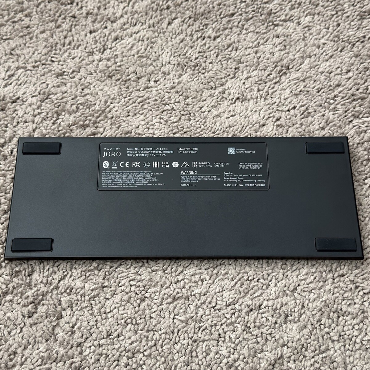 Game anywhere with the Razer Joro, an ultra-portable wireless gaming keyboard featuring multi-device Bluetooth pairing for seamless connectivity. Complete with ultra low-profile switches, a long battery life, and an ergonomic design, enjoy precision and control across all your gaming setups.