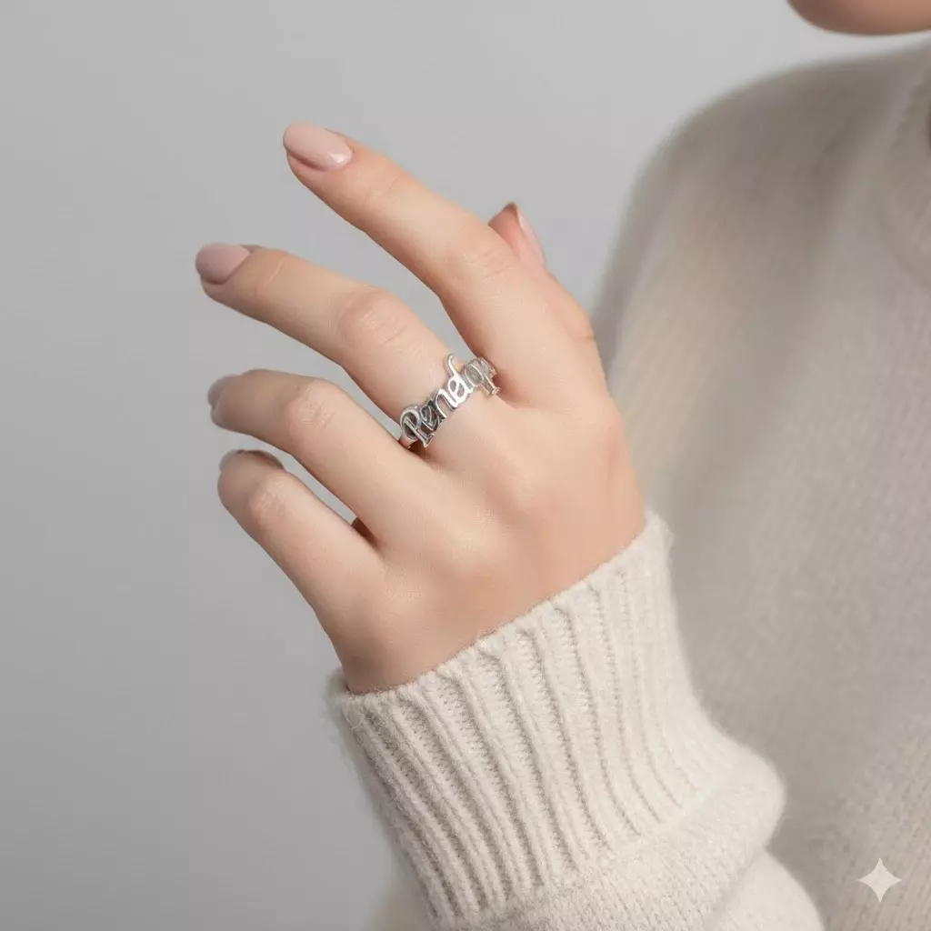 Add a meaningful touch to your everyday style with this custom name ring, crafted in 925 sterling silver and made to order with the name or word of your choice. The elegant script design is perfect for daily wear and makes a thoughtful gift for someone special.