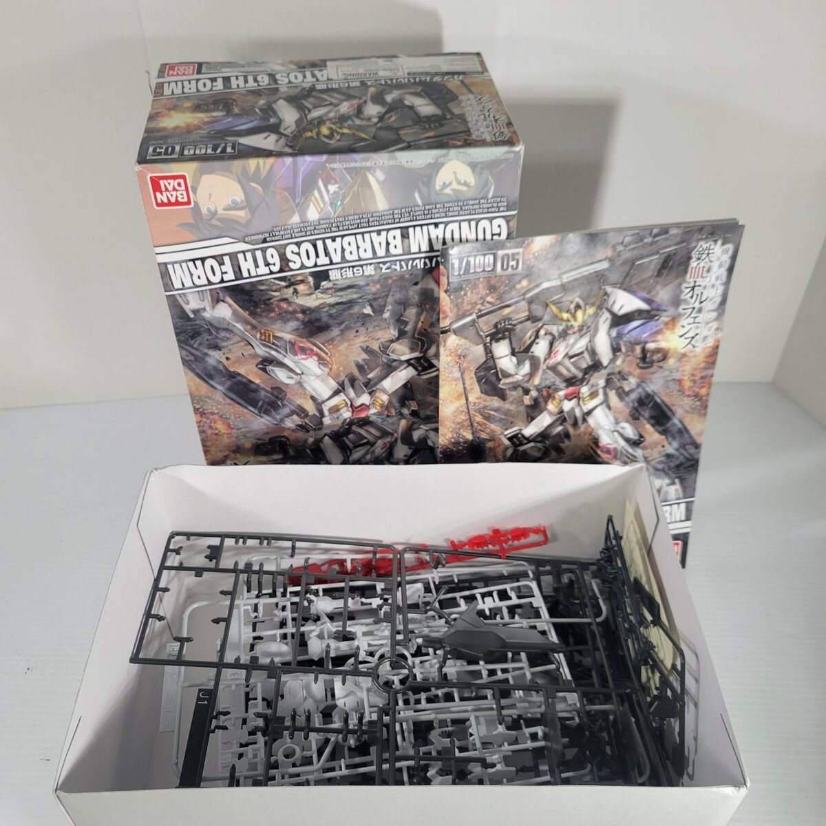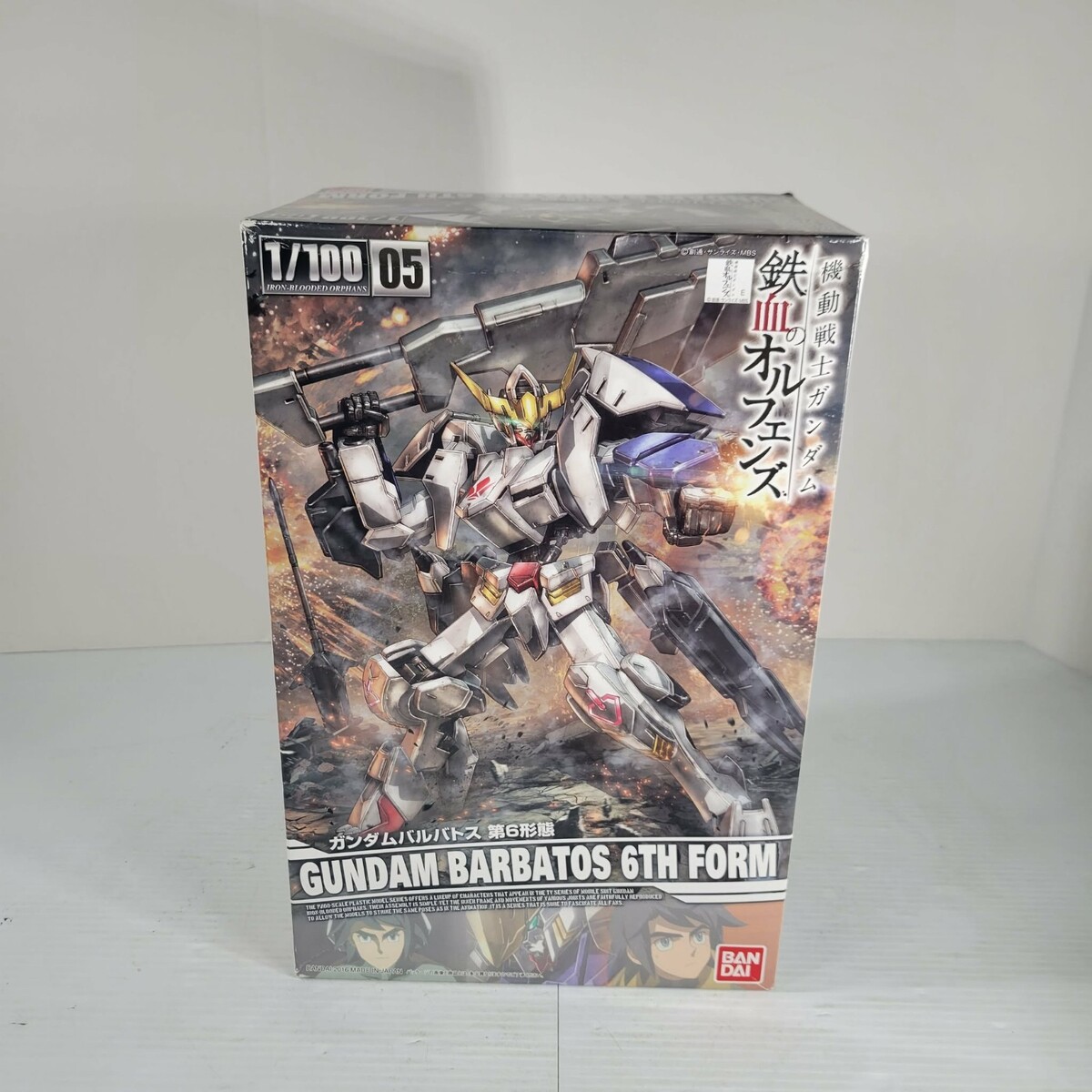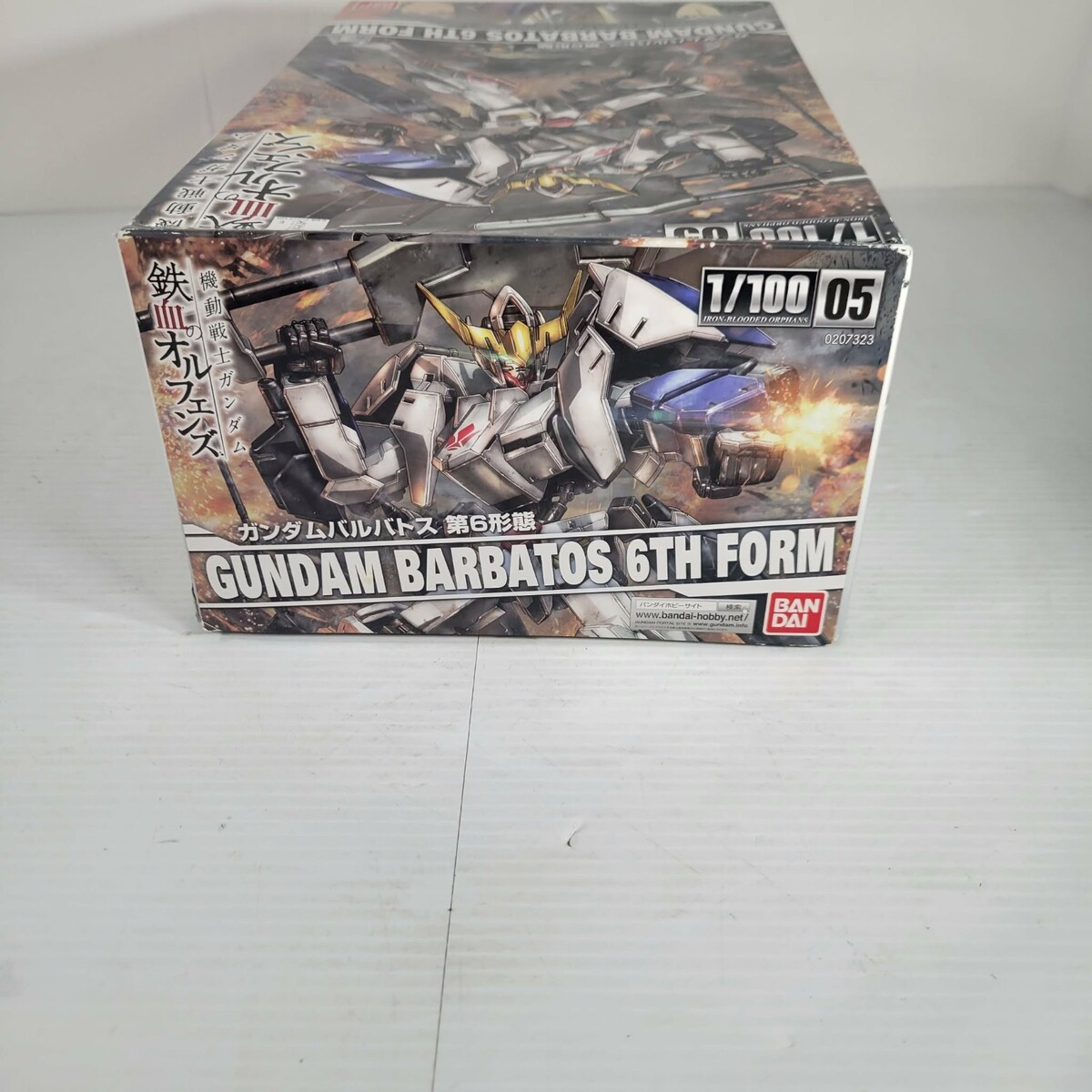 Looks new. No way to know if all pieces are there. The product is a 1:100 scale Gundam Barbatos 6th form model kit from Bandai, featuring the Iron Blooded Orphans theme. This unassembled kit is made of plastic and is part of the Gundam franchise. With its anime and manga influences, this Japanese-made model kit allows fans to customize and assemble their own detailed Gundam subject, perfect for collectors and hobbyists alike.