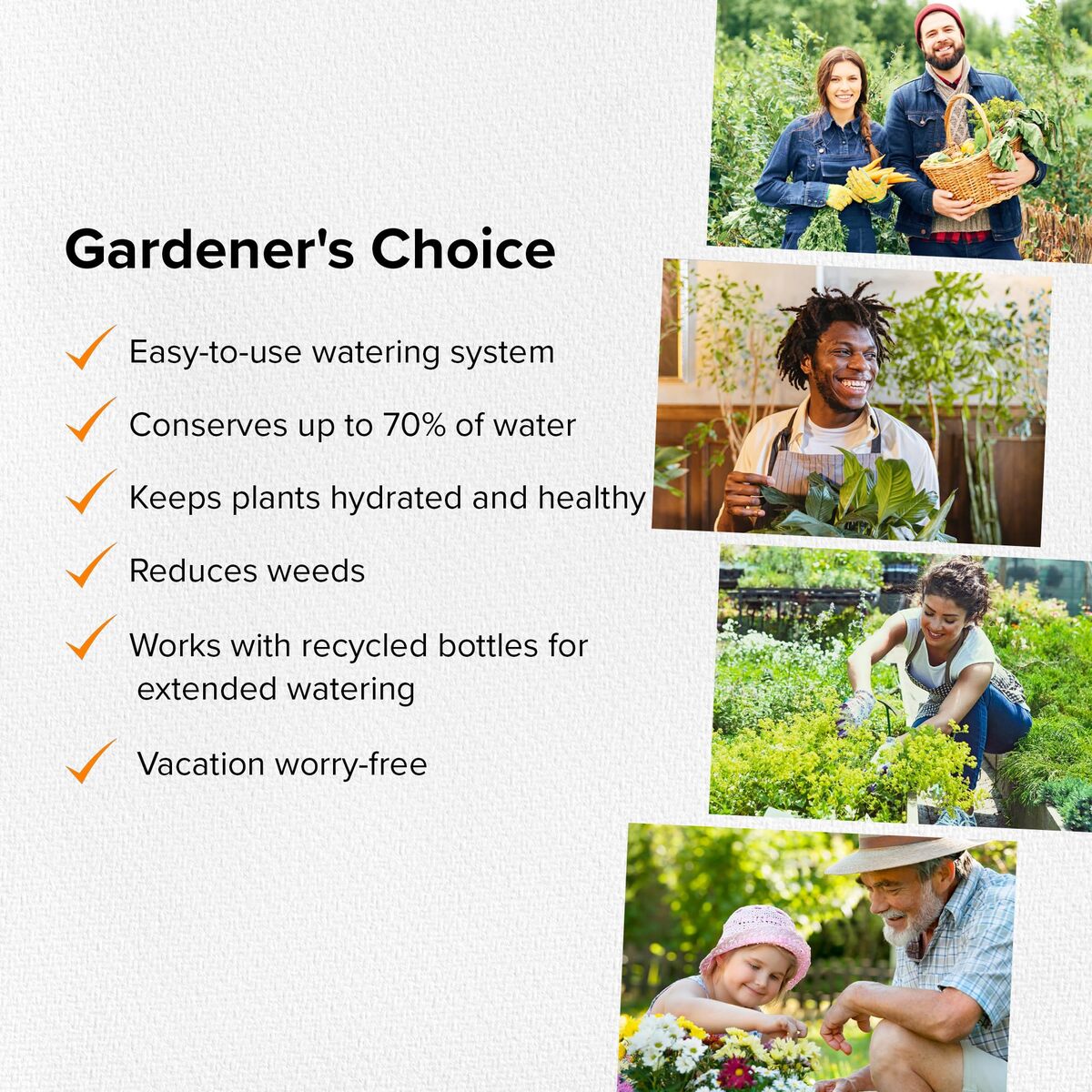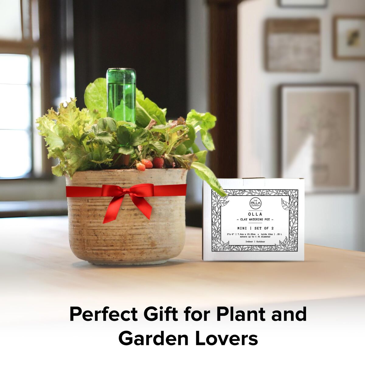 SAVE TIME ? Simply bury the Olla up to its neck, fill it with water and put on its lid! Refill with water at your convenience, any time of day or night. Gardens are unique but most Ollas need refilling only once or twice per week. Use with an inverted bottle for extended watering. This Olla watering system is easy and effective!,CONSERVE WATER 70% - No more over-watering or under-watering your plants and no water wasted. Plants ?drink? exactly the amount of water they need.,PROMOTE HEALTHY ROOT GROWTH ? Keep plants healthy and vibrant by watering where they need it most ? the roots. Ollas are buried in the soil near each plant's root zone creating a consistent and steady water source.,REDUCE WEEDS - The clay pot irrigation system minimizes weed growth by evenly distributing water directly to plant roots instead watering at the surface.,VACATION FRIENDLY - Plants will stay hydrated even while you?re away. Simply fill the Olla watering pot with water before you leave and let it do its job. For extended vacations, use with upcycled water or wine bottles.