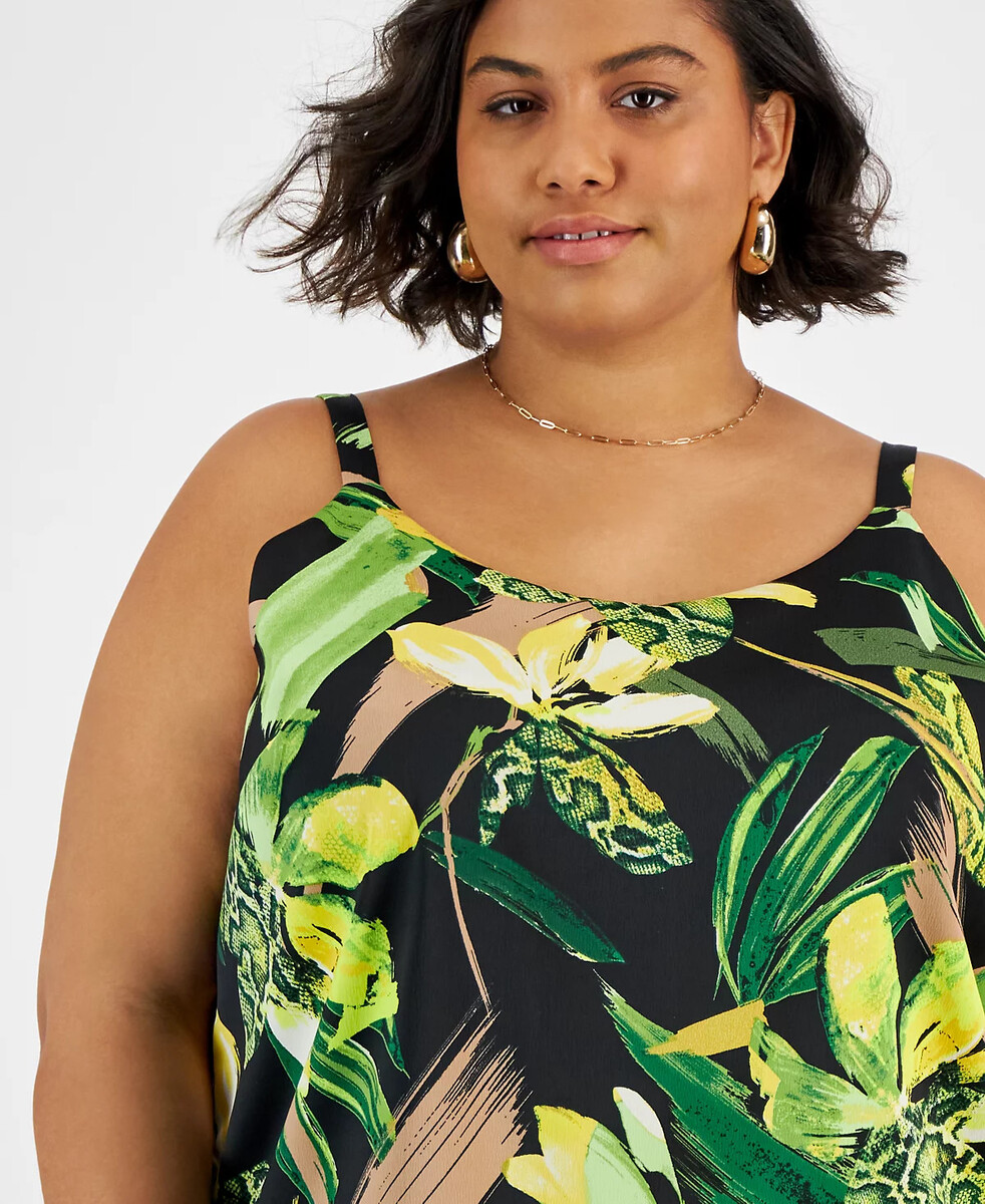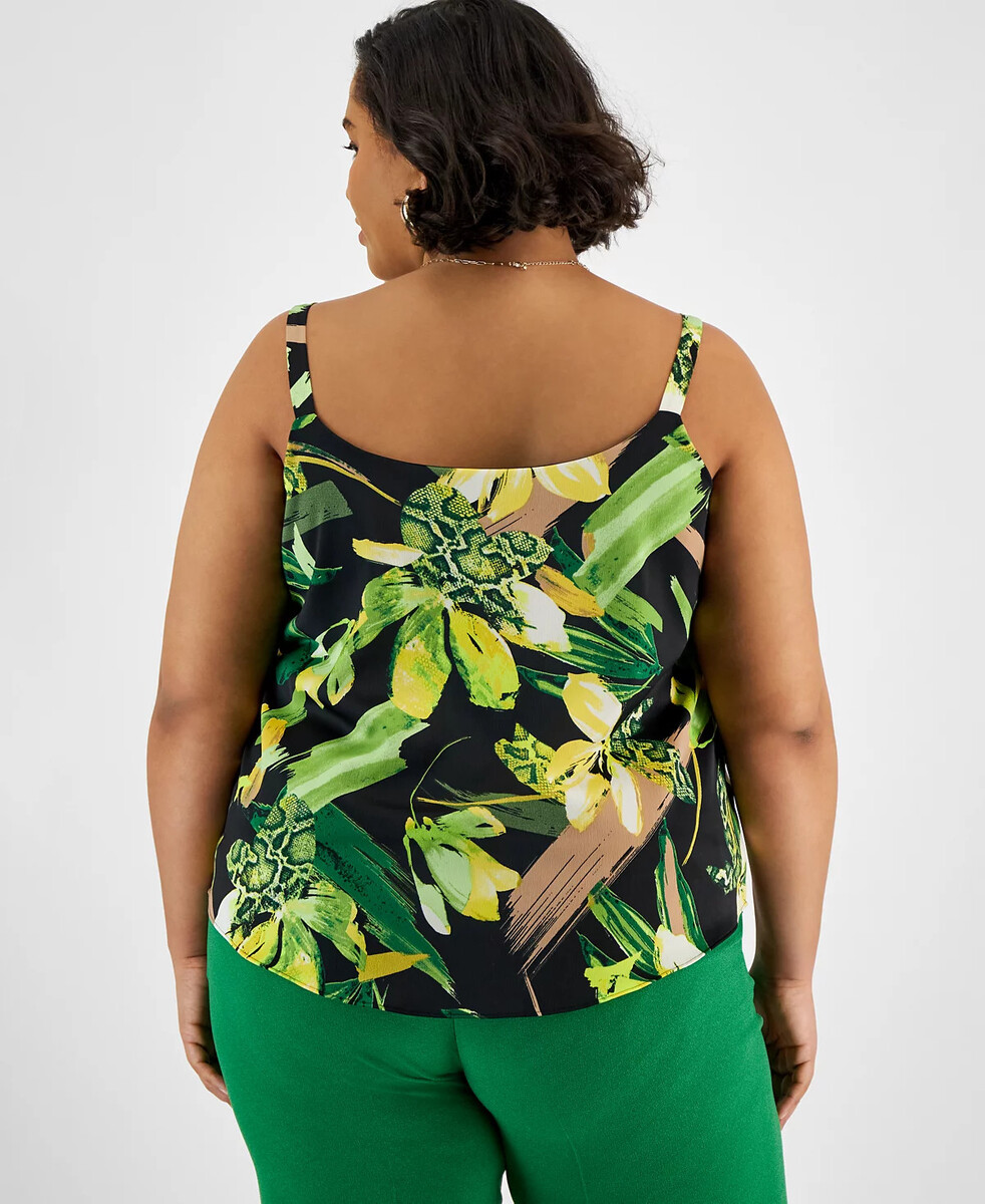 Bar III Women's Green Printed Cowlneck Camisole Top Plus Size 3X