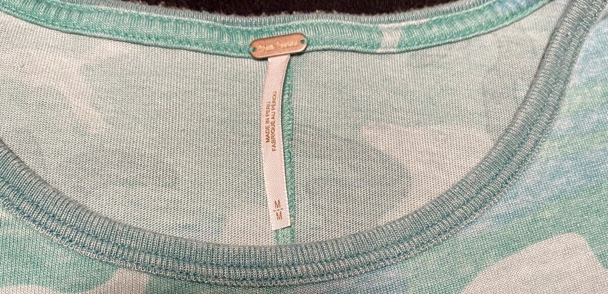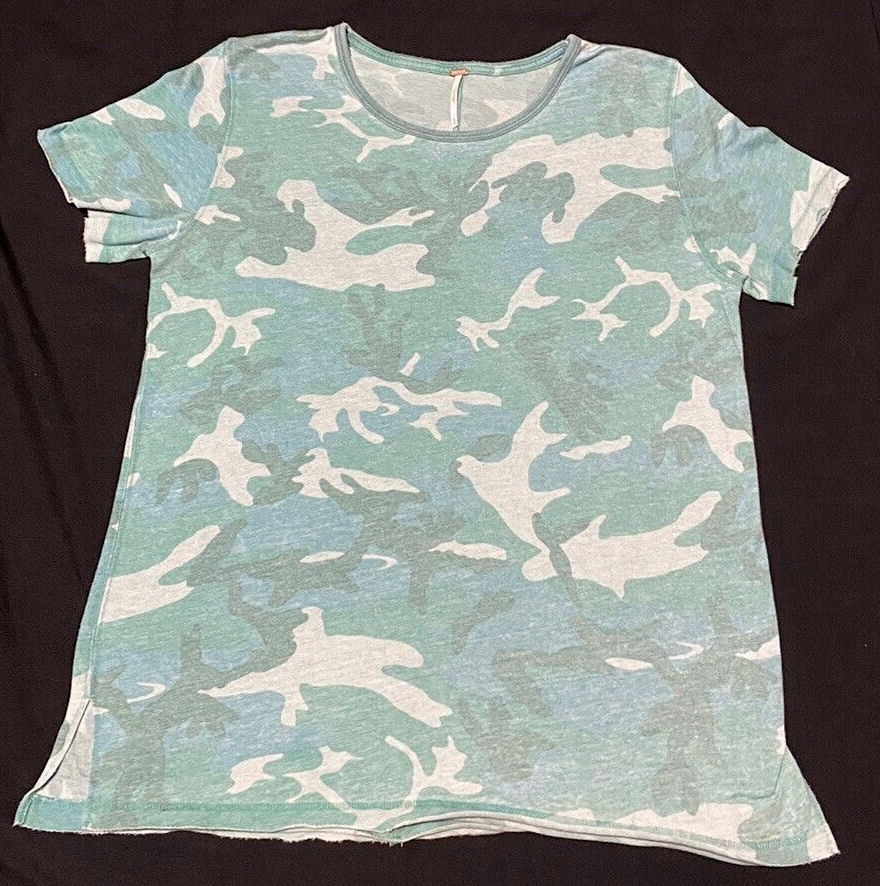 Free People Faded Green Camo Raw Hem Relaxed T-Shirt Size Medium NWOT