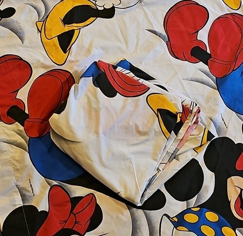 UP FOR SALE: Vintage Disney Mickey Minnie Mouse Wamsutta 2 Pc Twin Sheet Set All Over Print