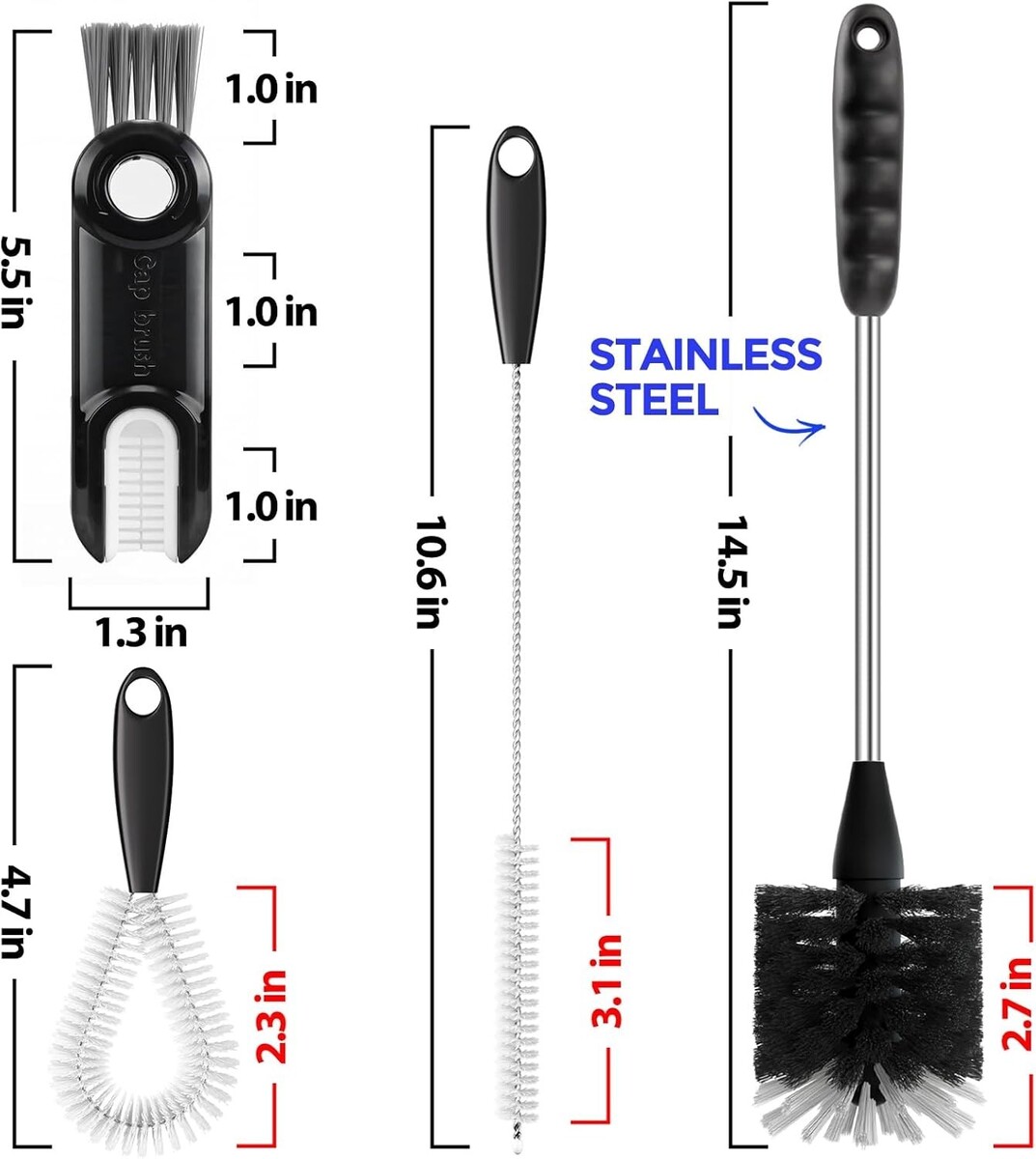 Versatile Utility: Designed for multiple bottle types and sizes, these brushes are perfect for cleaning your cups, bottles, travel mugs, and containers.