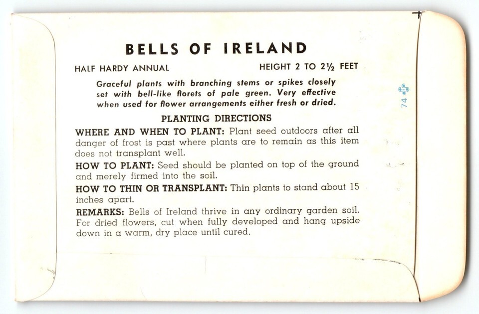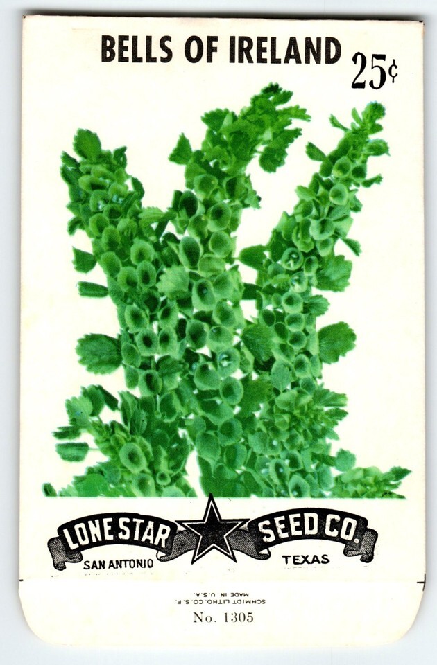 Bells Of Ireland Flowers Lone Star Seed Co. Packet EMPTY Envelope Vintage 1974