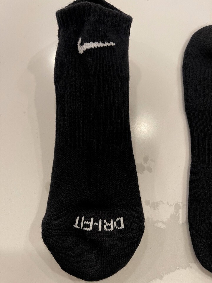 NEW 2 PAIR EVERYDAY PLUS NIKE NO SHOW SOCKS BLACK DRI-FIT WOMENS SIZE 6-10
