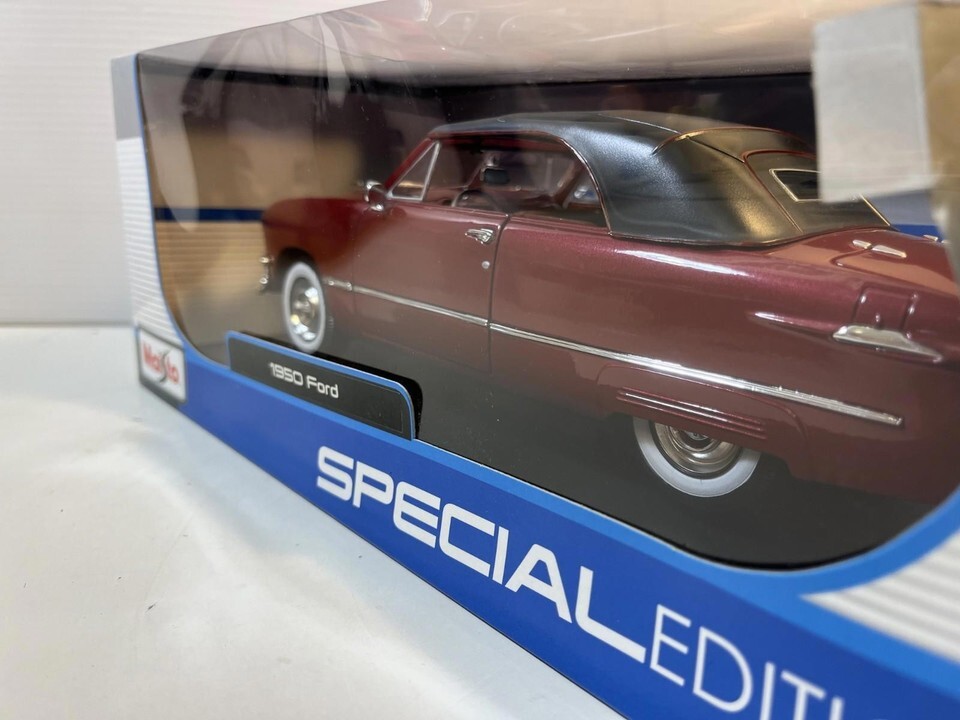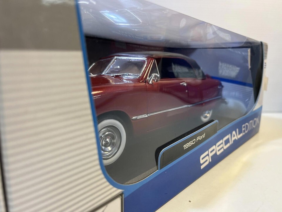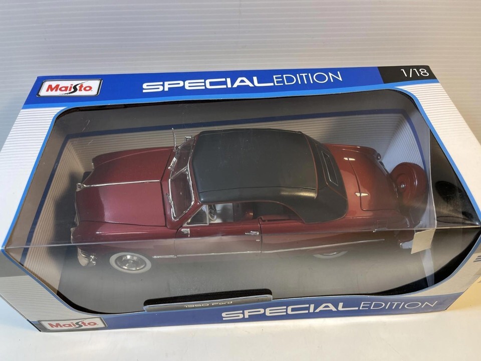 1950 Ford Coupe Diecast Model Car: 1/18 Scale By Maisto. This Diecast car checks all the boxes for a reasonably priced rendition of the classic die cast 1950 Ford Coupe. This is a used car and may have paint imperfections and / or other defects but is priced accordingly. Please review pictures carefully before purchasing.