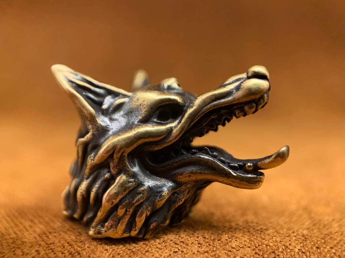 Brass Three-Eyed Wolf EDC Knife Bead, Lanyard Charm