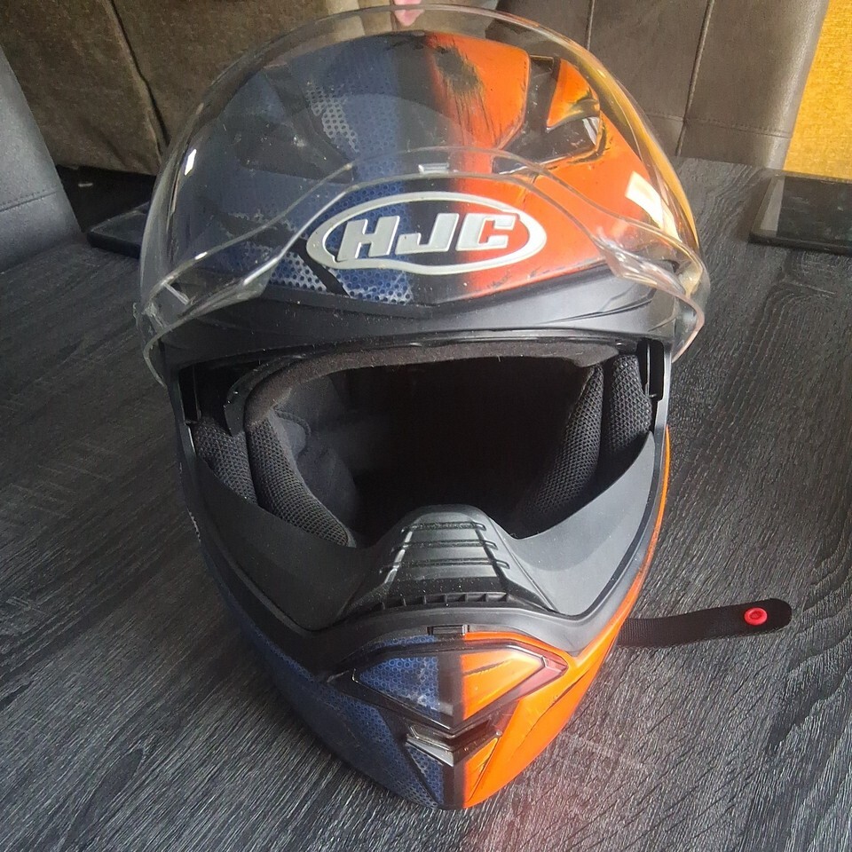 HJC F70 Motorcycle Helmet Size XL Flip Up Visor Orange Blue Xl
