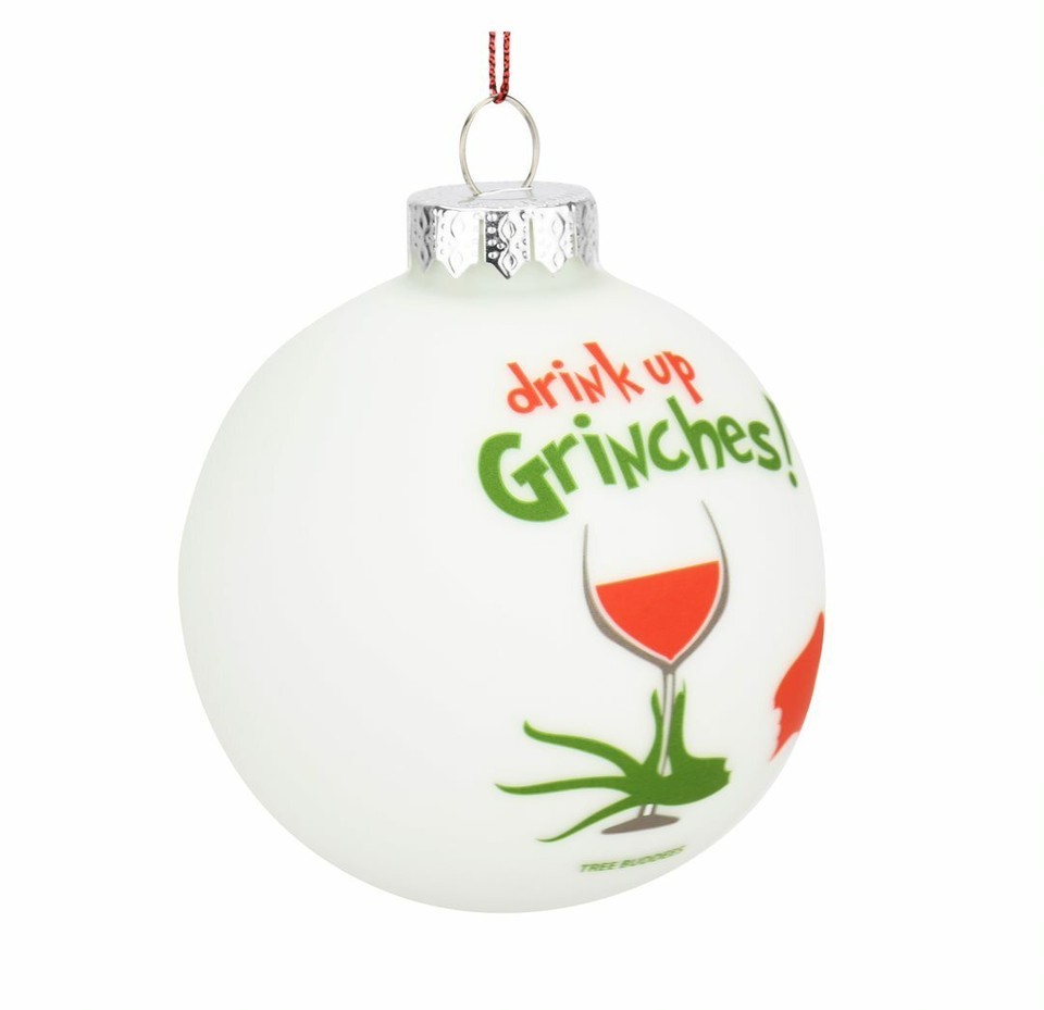 NO PACKAGING -Tree Buddees Drink Up Grinches! Funny Wine Glass Bulb Ornament