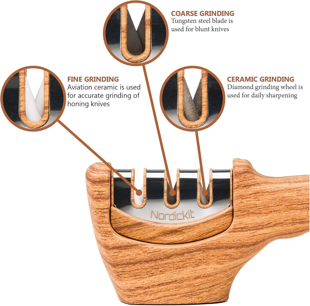 Kitchen Knife Sharpener By NordicKit - 3 Stage Diamond Manual Sharpening Tool