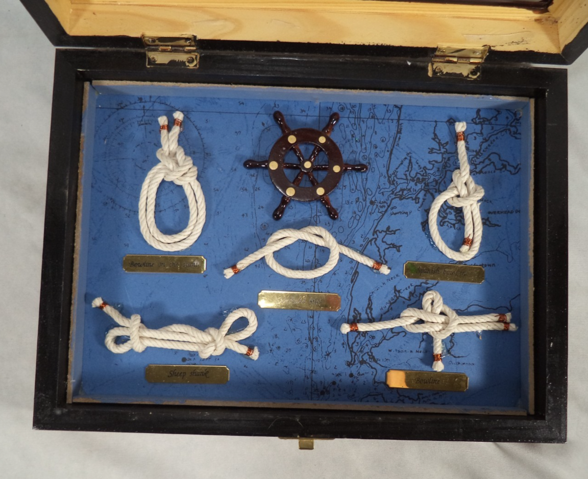 Sailor's Nautical Knots Dark Wood Shadow Box 7" x 10" Ship Decor NO GLASS