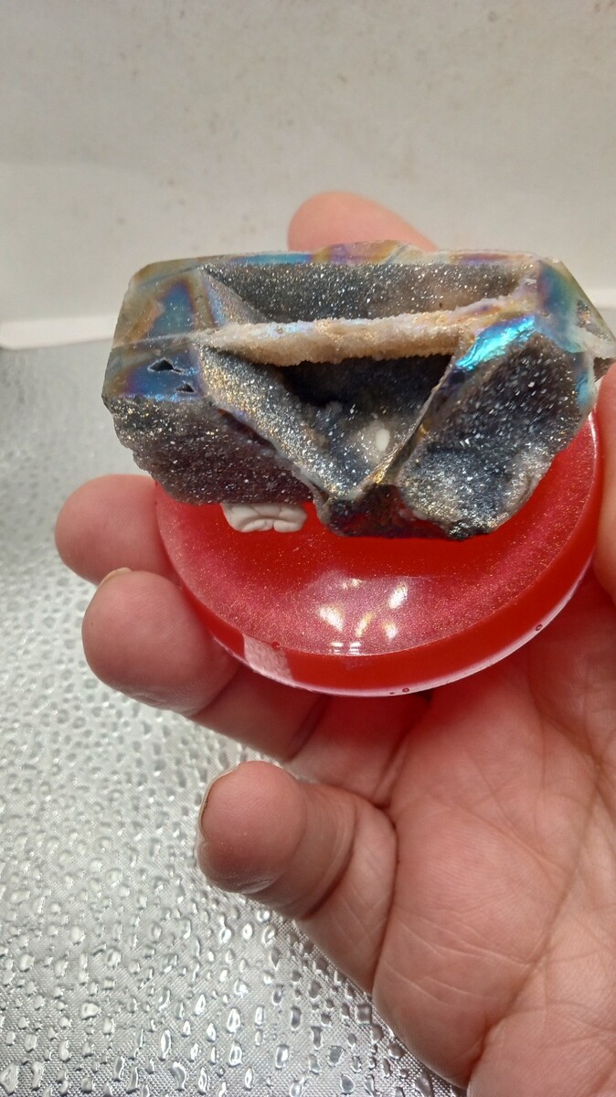 Sparkly Angel Aura Quartz on Red Stand and similar items