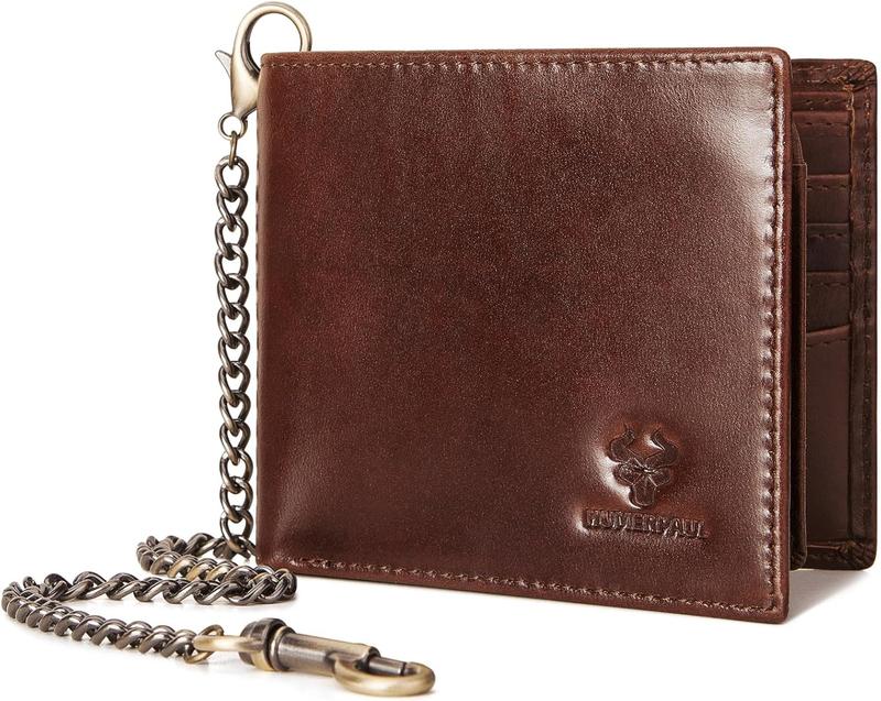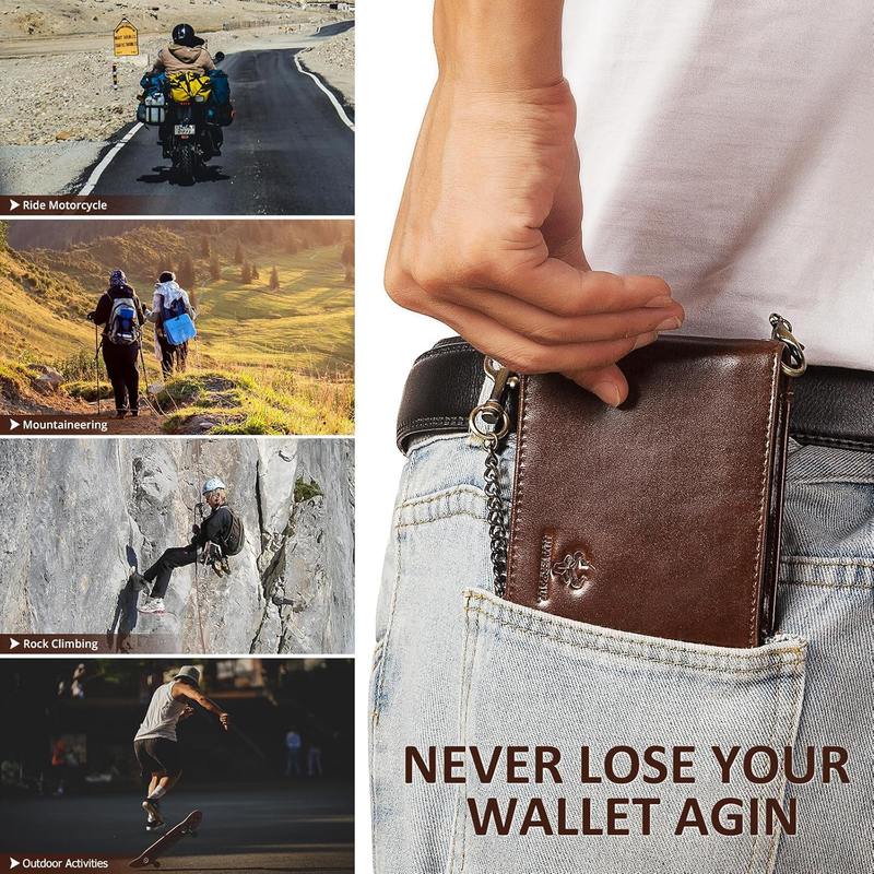 Chain Wallets for Men, Genuine Leather Purse Blocking Bifold Wallets with 2 ID