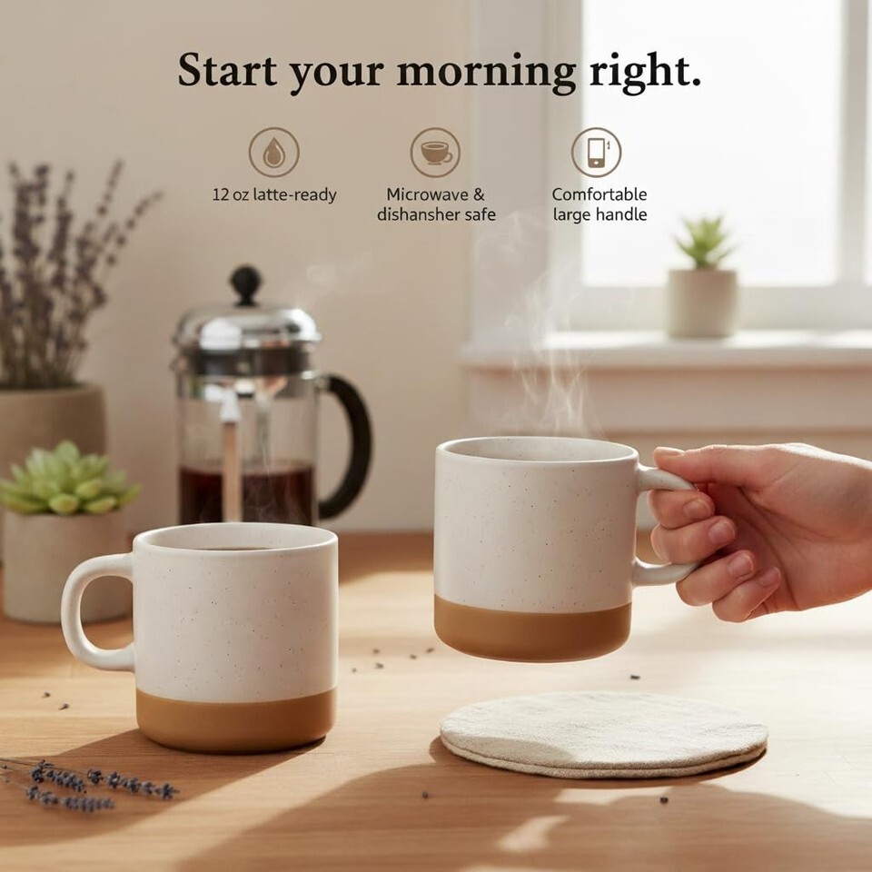 Unboxme Givenne Ceramic Latte Coffee Mug Set 12 oz 4-Piece Microwave Dishwasher