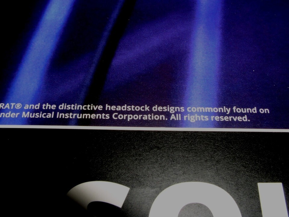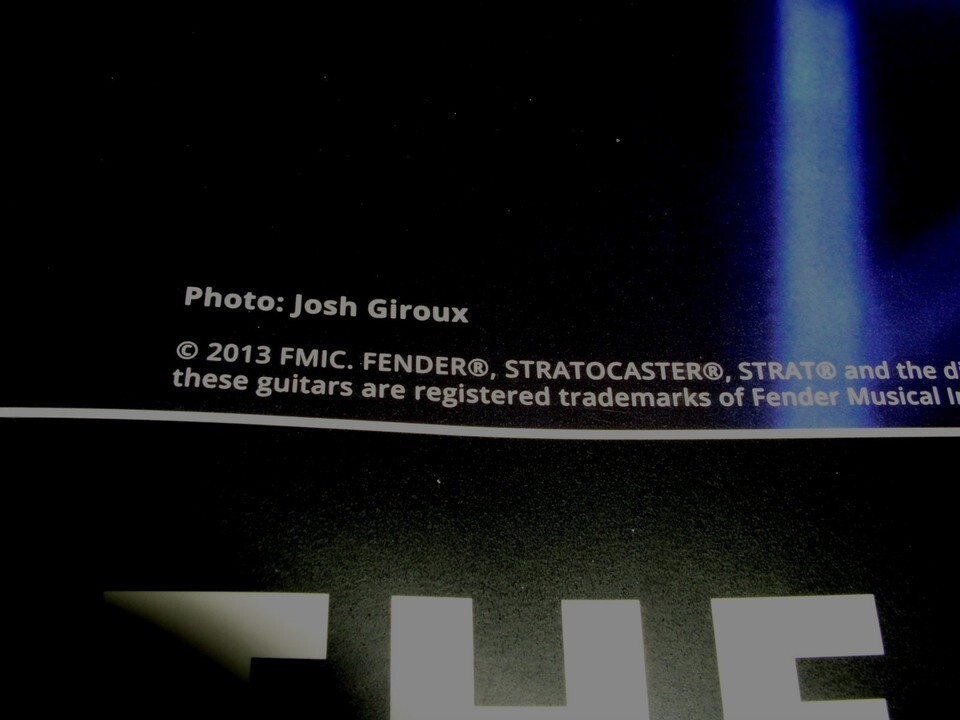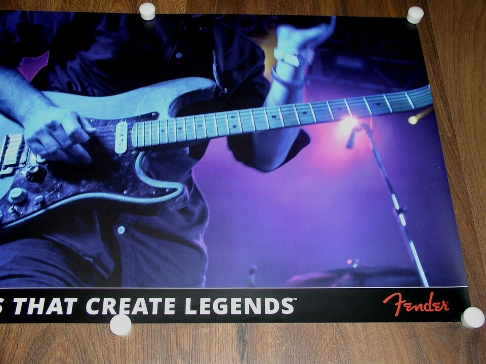 This is an original Fender guitar promo poster store display entitled, "Fender, The Sounds That Create Legends". Dated 2013 FMIC. Photo by Josh Giroux. Printed on heavy stock paper, similar to photography paper. A terrific item for the fan or collector.