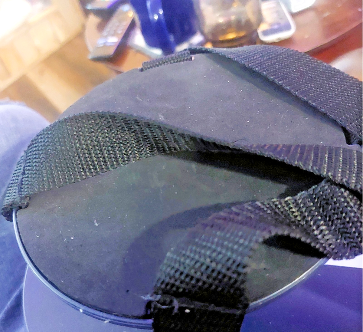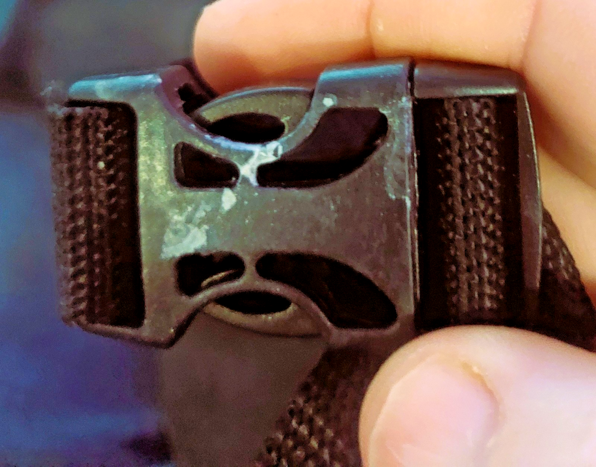 It has an adjustable strap to fit most vehicle headrests.