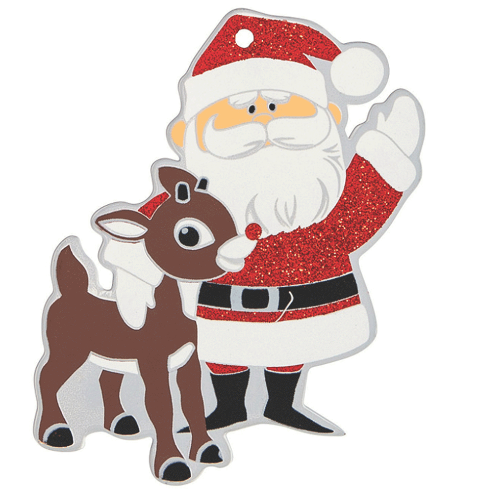 Rudolph the Red Nosed Reindeer and Santa Metal Ornament