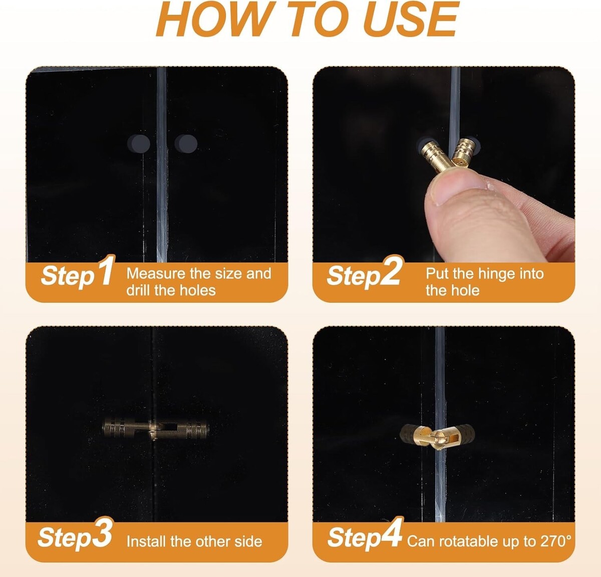 Made from brass, this hinge is durable, smooth operating, and can be used for a long time. Wear-resistant and corrosion-resistant, not easy to deform and the hinges won't damage the furniture. With its premium structure, these can be easily and quietly opened or closed in anything you put them in