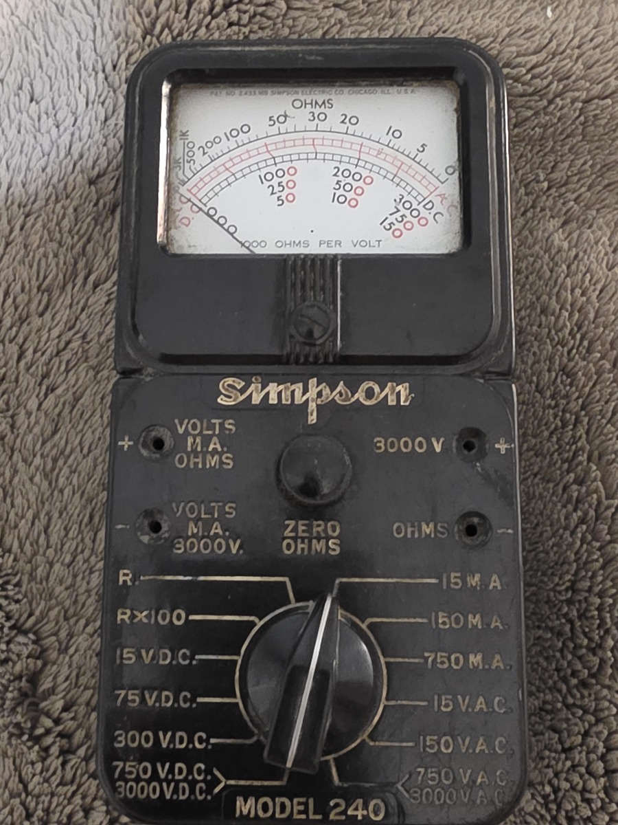 Simpson model 240 Volt/Ohm Multimeter;untested;no leads.