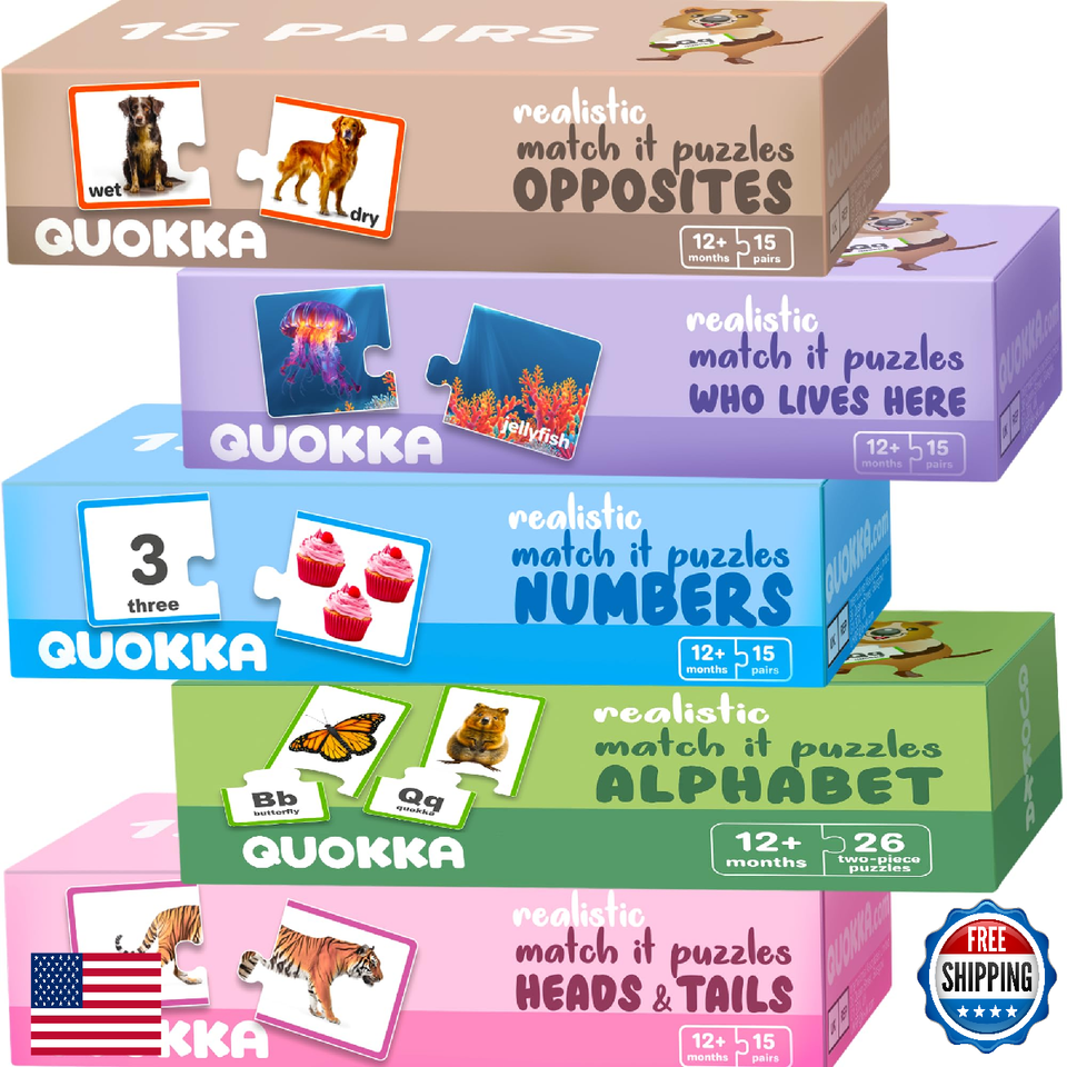 QUOKKA 5X MEGASET Realistic Puzzles for Toddlers 3-5 - Matching Games for Kids