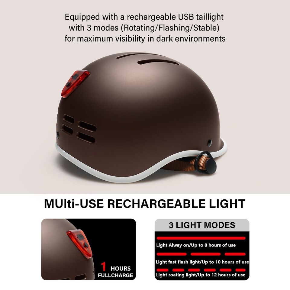 Exclusky Adult Bike Helmet w/ USB Light, Adjustable for Men & Women Cycling