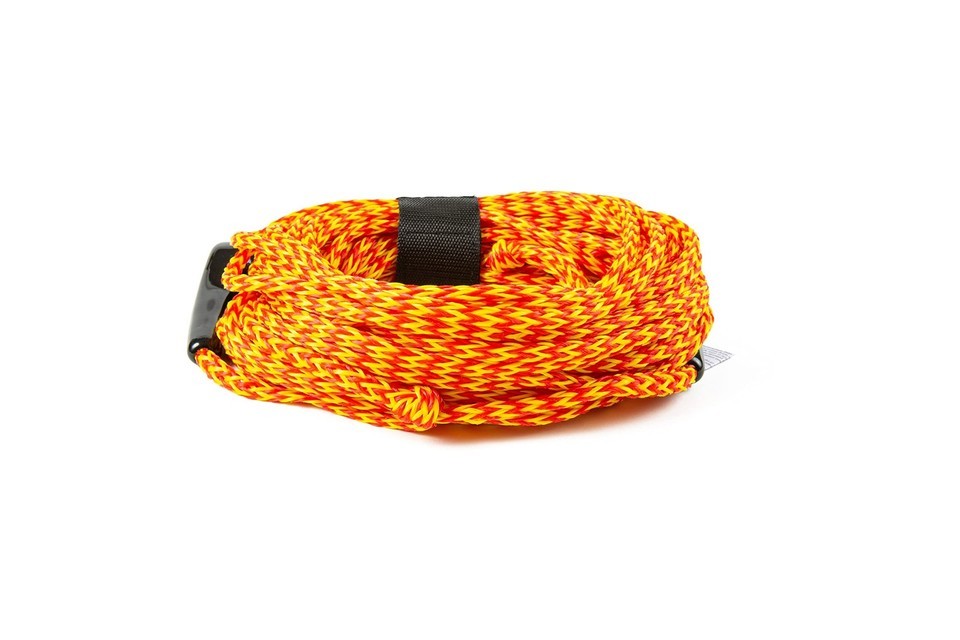 This water ski rope is rated up to 1600 lbs tensile strength and made for towing behind a boat. Made with a floating grip tread rubber handle with a12 inch aluminum core. It also has molded finger protectors with end caps for comfortable gripping over long rides. The 75' 1-section water ski rope is UV treated and pre-stretched.