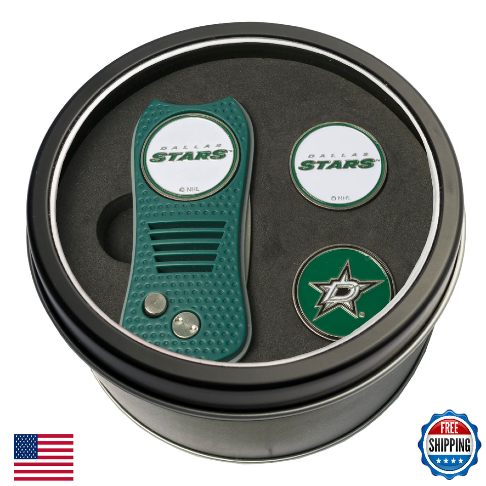 Team Golf NHL Dallas Stars 2 Ball Markers Tin Gift Set W/ Retractable Divot Tool
