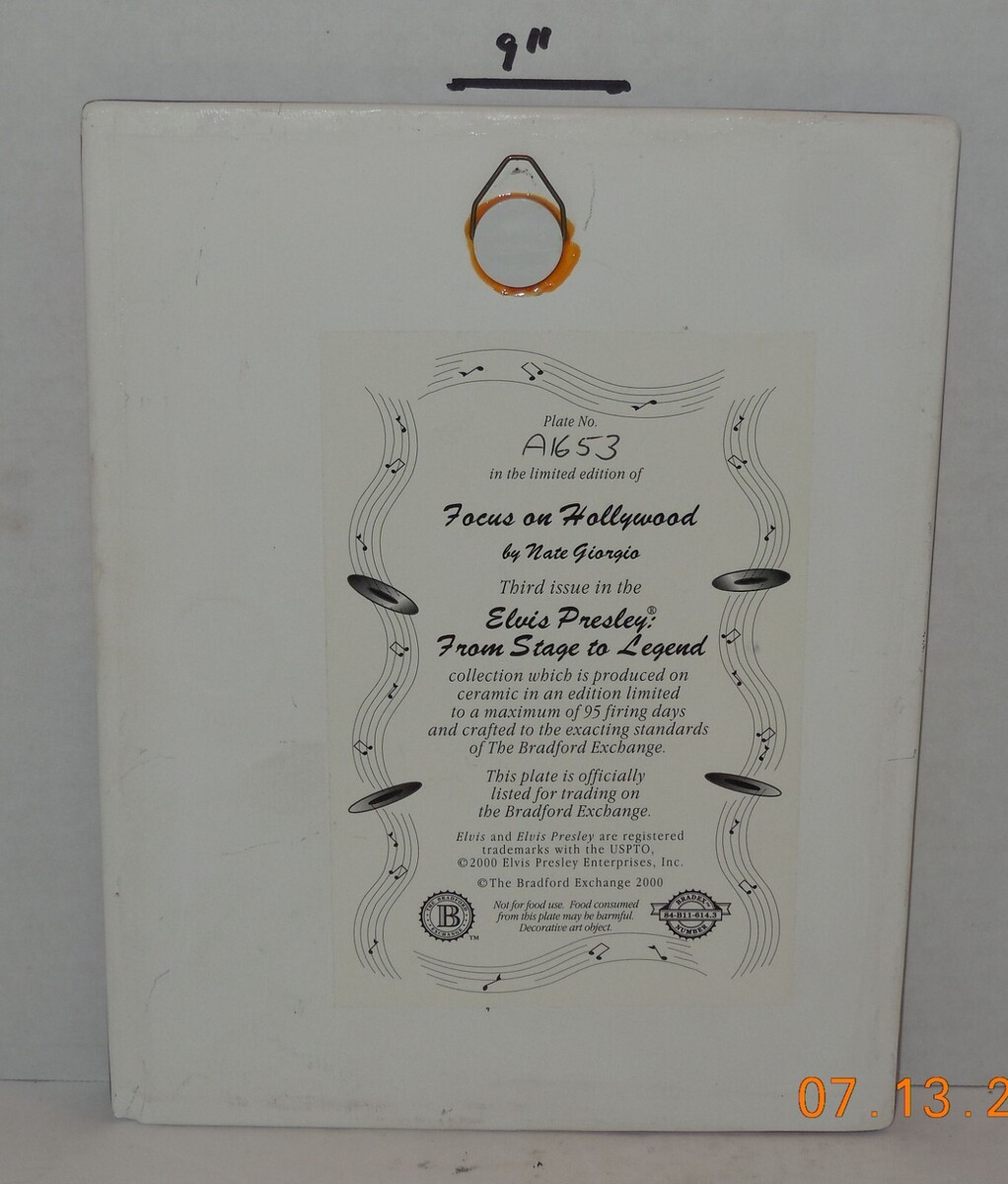 For Sale is a vintage 2000 The Bradford Exchange Elvis Presley "Focus on Hollywood" Collector Plaque LE Limited Ed. it in very good condition as seen in the pictures provided what you see is what you will receive. Please ask Any and All Questions prior to purchasing. Fast Same or Next day shipping with Free Delivery Confirmation within the U.S. Payment Due within 7 days of purchase (if you need more time please let us know In advance) we love to combine shipping is always a Yes and Most of the time Additional Items Ship for free.