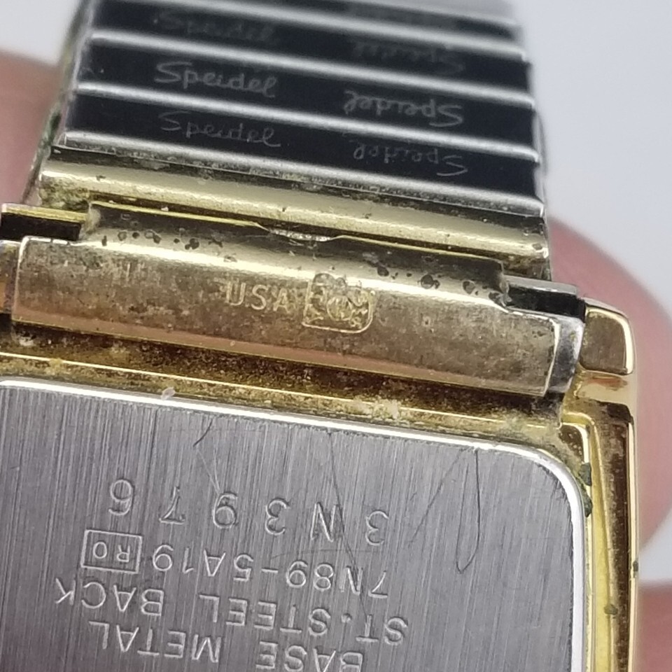 The case and band are in great shape as well as the crown. The time can be set. The glass has some scuffs and the movement has some discolor. It will need a new battery and has not been tested. Selling as is. SEE PICTURES.