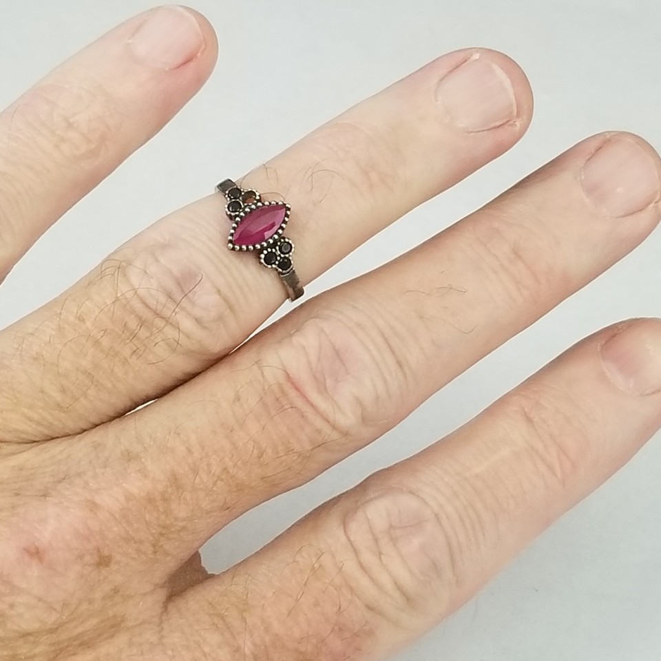 sterling silver ruby & black onyx ring ladies SIZE 6 ESTATE SALE BEAUTIFUL!