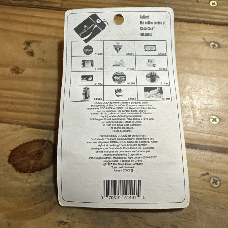 The Vintage Coca Cola Ski polar bear Magnet from 1995 is a collectible decor item that features the iconic Coca-Cola branding in a multi-color design. This unique advertising piece showcases the soda theme and is an original reproduction, making it a desirable addition for collectors of Coca-Cola memorabilia and decorative magnets. Perfect for adding a touch of retro charm to any space, this magnet captures the nostalgia and distinct style of classic Coca-Cola advertising.