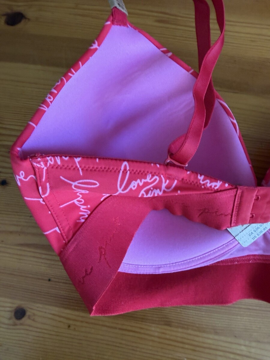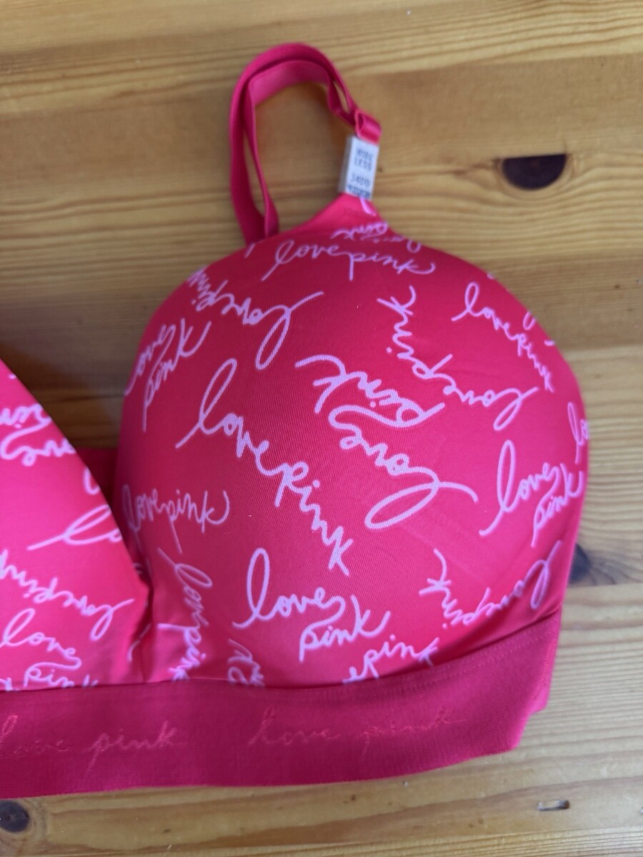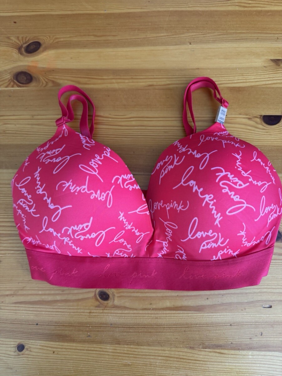 Victoria’s Secret Love PINK wear Everywhere Wireless Push Up Red Bra 34DD NWT
