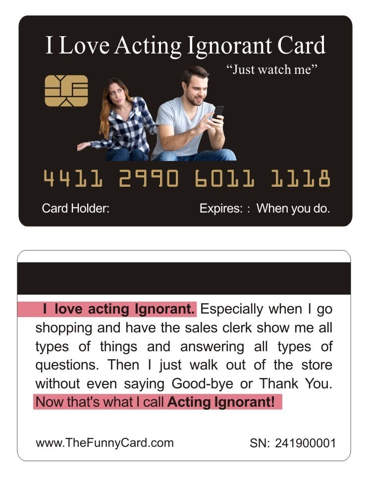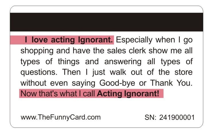 Aromabug Funny Fake Bankcards, 8 PACK: I LOVE ACTING IGNORANT Card (Free Ship)
