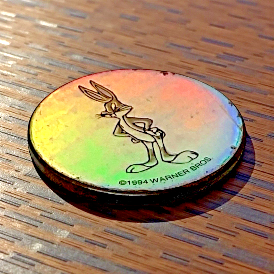 1994 WPF Bugs Bunny Metal POG Slammer – 1.5" Holographic Looney Tunes Vintage