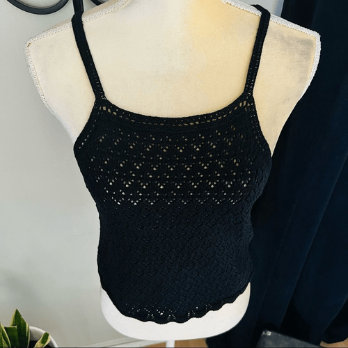 French Connection Nora Crochet Sleeveless Top, Black, Size Medium, (6/8), NWT