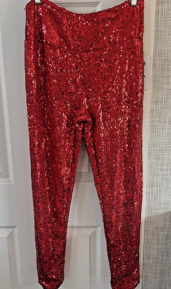 Tipsy Elves red sequin high waisted pants or leggings. Machine wash or dry clean. Hang dry. Fully lined. Super cute for a Christmas Party. Measurements are waist 32", inseam 25", rise 11" and hips 38". 95% polyester and 5% spandex.