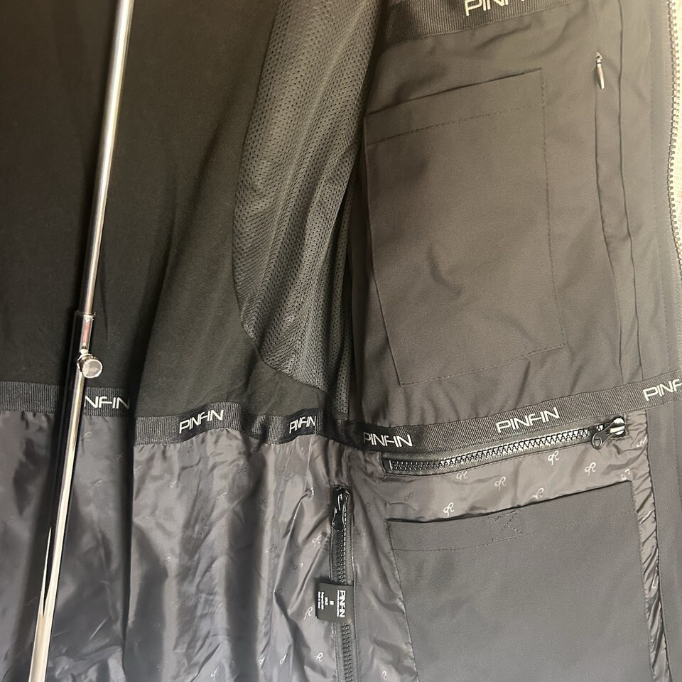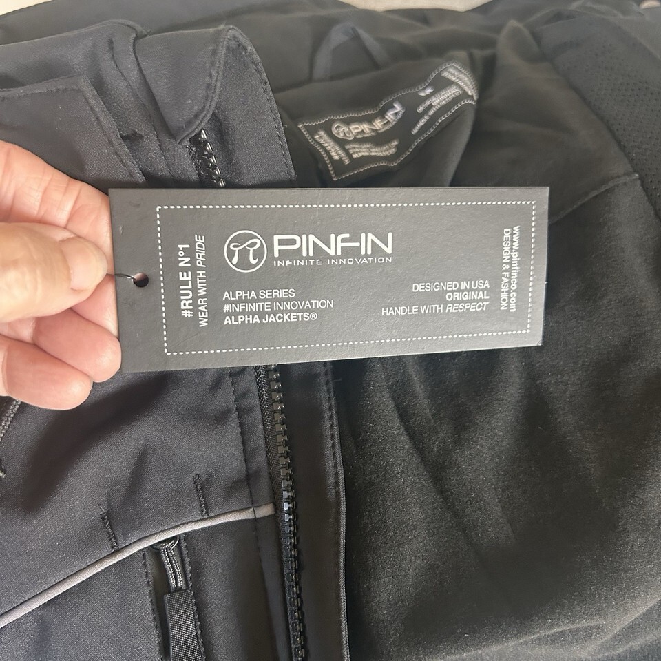 Pinfin Windbreaker Sz Medium Mens New Alpha Jacket Fishing Black Gray Trim BxEE