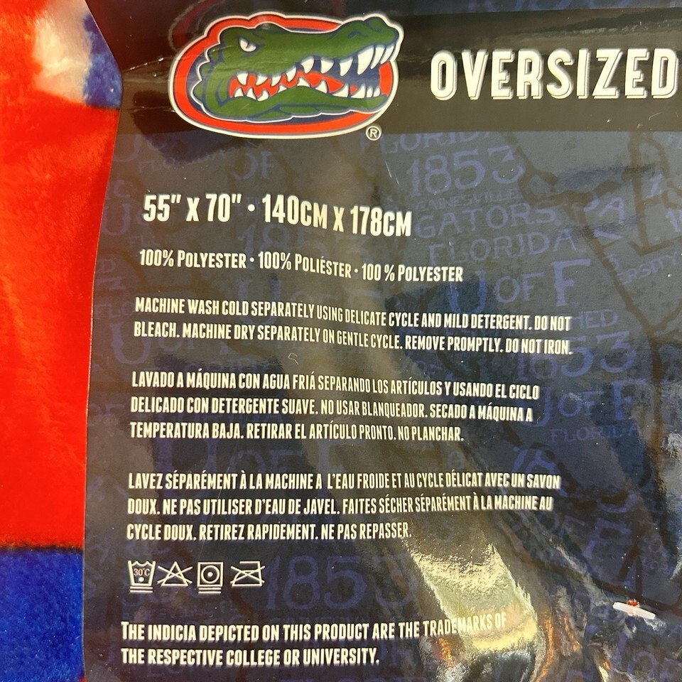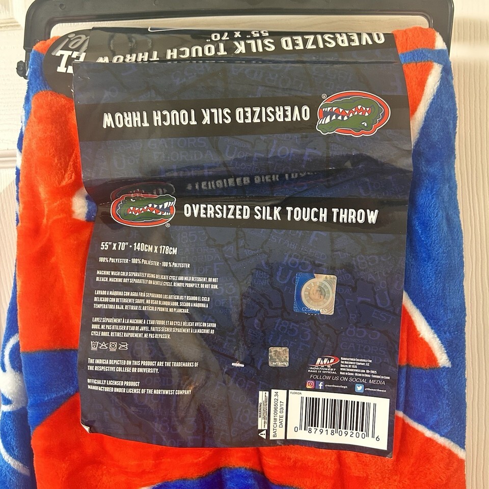 New, with tags. Oversized blanket / throw. 55" x 70". Florida Gators, licensed collegiate item. Northwest. Silk Touch Throw. Machine wash.