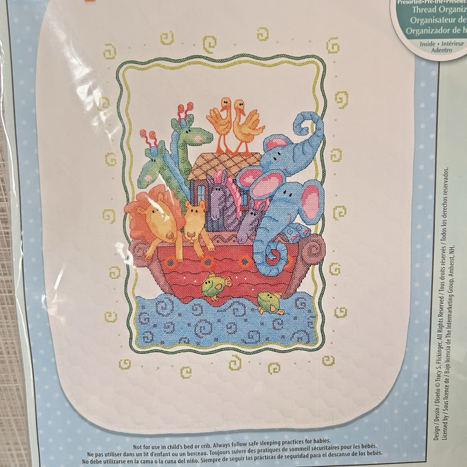 Dimensions Baby Stamped Cross Stitch Kit Noah's Ark Quilt #73125 Vivid Colors. New, in packaging.