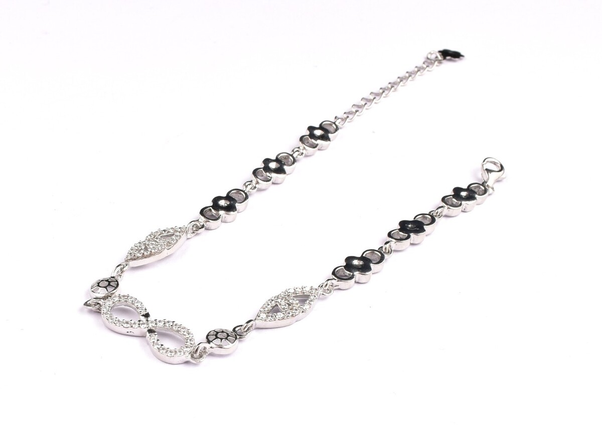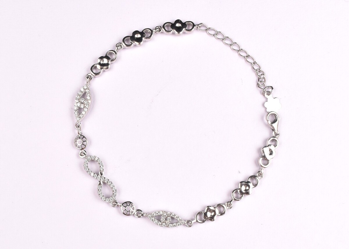 Bracelet artisanal en argent sterling 925, pierre précieuse zircon, huit motifs