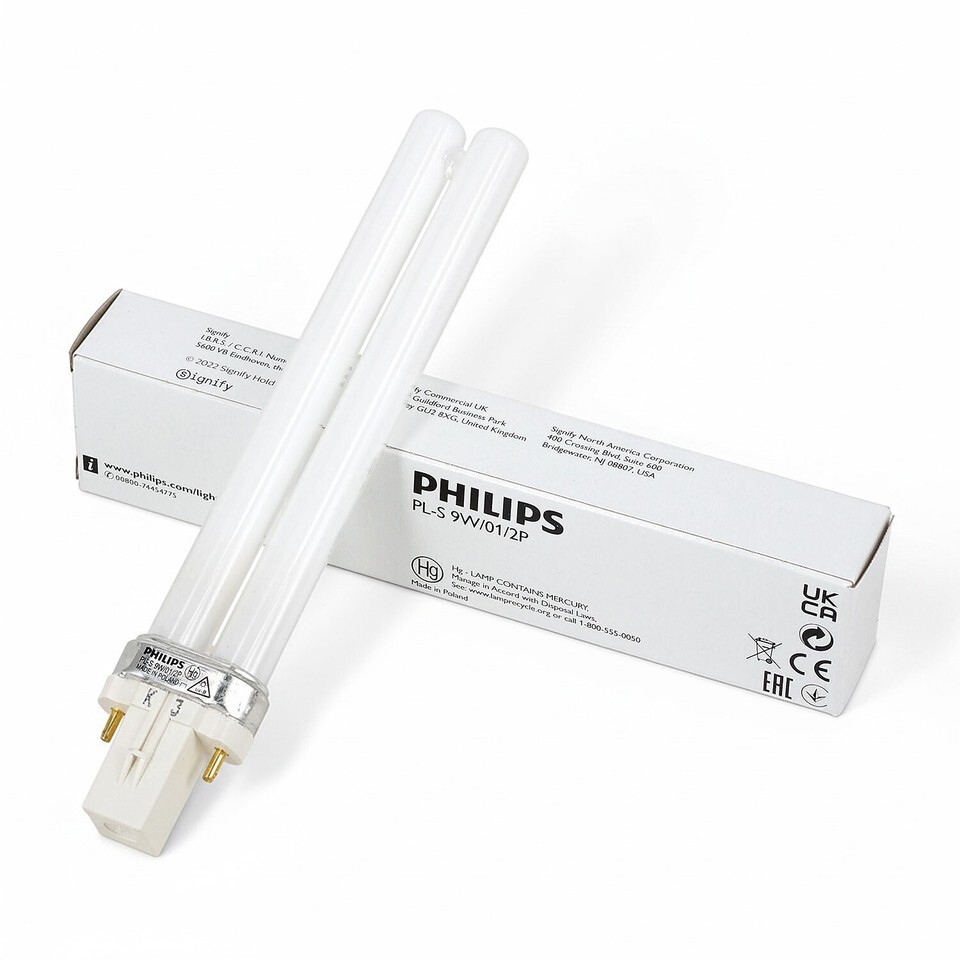 The Philips PL-S 9W/01/2P is a compact narrowband UVB lamp designed for phototherapy applications.