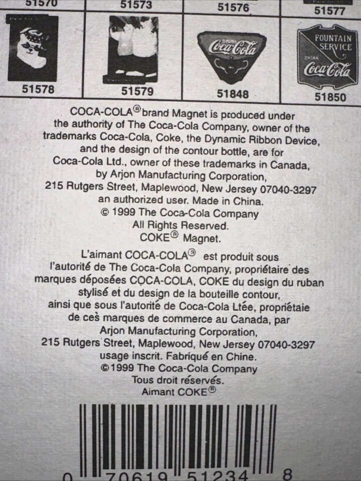 This vintage 1998 Coca-Cola sign refrigerator kitchen magnet is a unique collectible for fans of the iconic soda brand. The multi-color design, original production, and theme of soda make it a nostalgic addition to any collection. Made in China, this Coca-Cola magnet is a whimsical and decorative piece that pays homage to the classic soda culture from the late 20th century. Perfect for adding a retro touch to any kitchen or collection, this magnet is a must-have for Coca-Cola enthusiasts.