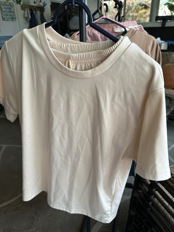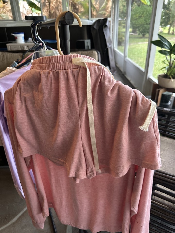 This product consists of 5 shorts and top sets, along with 5 pairs of leggings, all in a size small. The shorts are short sleeve, and the outfits are designed for a relaxed fit. Made from a blended fabric, these outfits are machine washable and perfect for the seasons of summer, fall, and spring. The multicolor sets do not have a vintage look and are not personalized. Ideal for women looking for comfortable and stylish clothing options for various seasons.