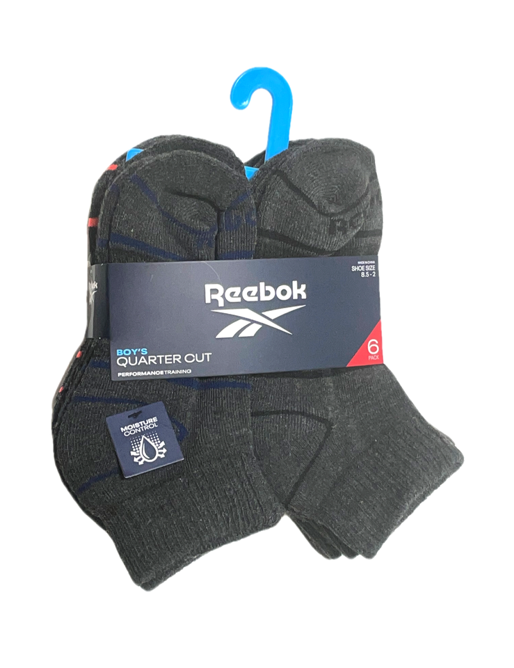 Reebok Quarter Socks Boys M (8.5-2) Performance Training Gray 6 Pairs Low Cut