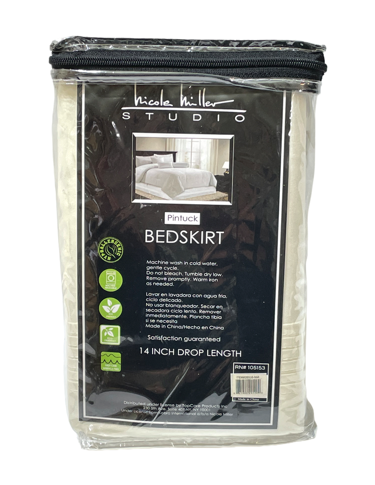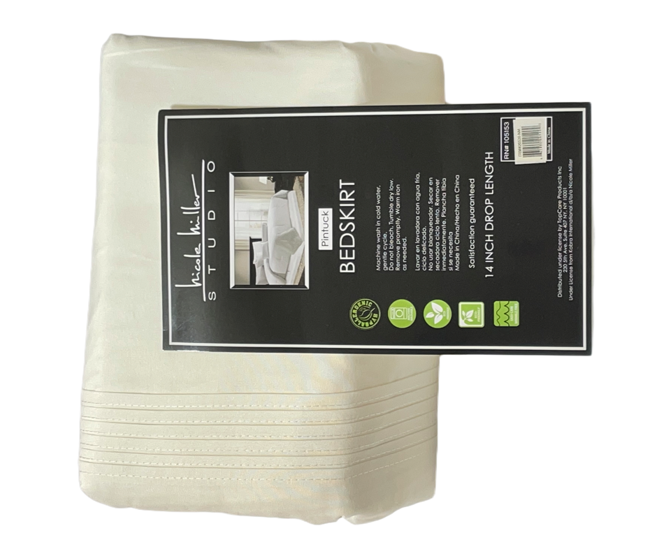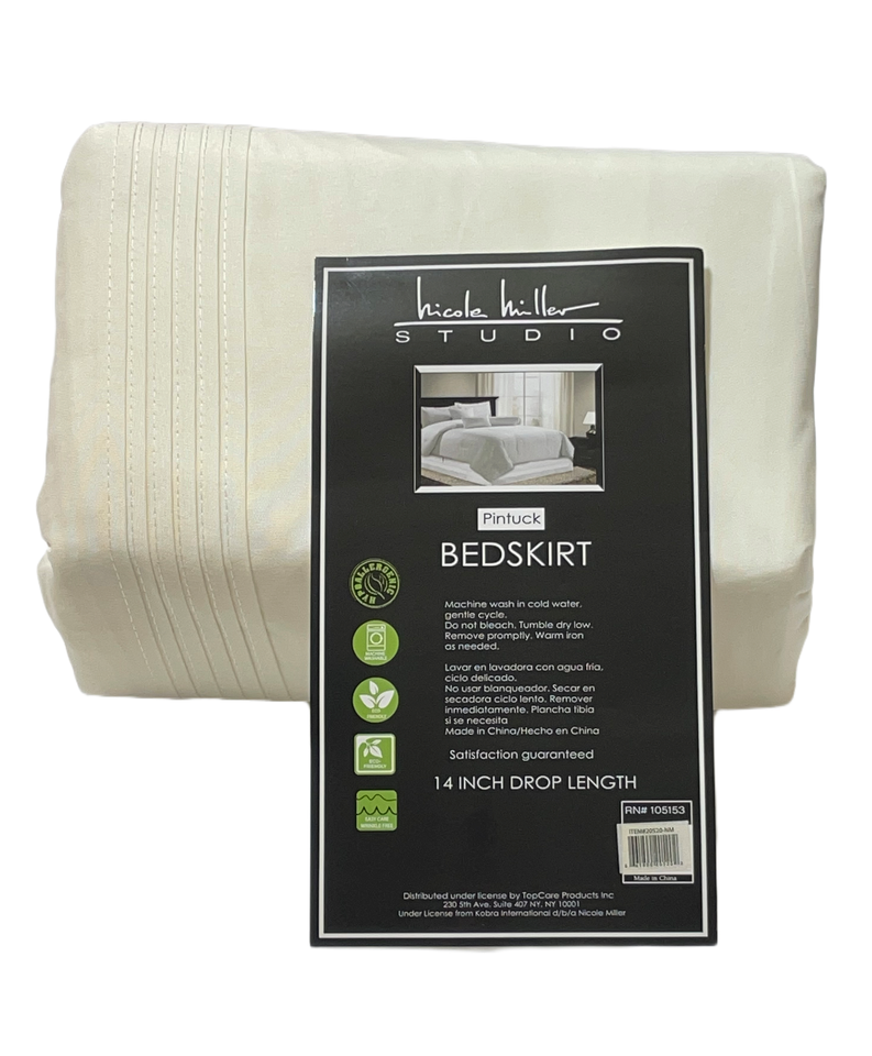 Nicole Miller Pintuck Full Bedskirt Cream 14" Drop Hotel Suites Collection